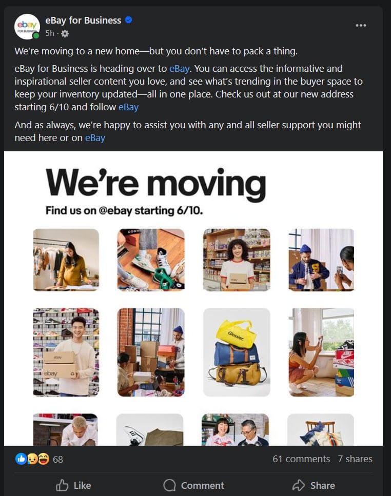 eBay announced during the Summer 2024 Seller Check In that the dedicated eBay For Business seller support page on Facebook will be shut down, with support functionality directed to the main eBay profile instead.