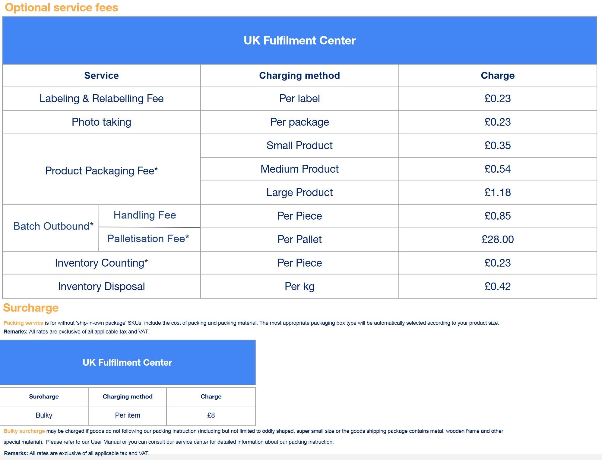 I don't even understand what some of these are, and when they're charged. Is there a "Labeling Fee" for each order? I've got no idea what a "Batch Outbound Handling / Palletisation Fee" is.