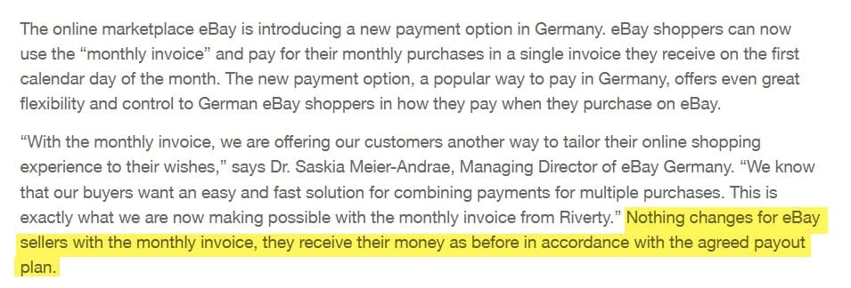 eBay Germany & Riverty Monthly Invoice Payments: What Sellers Need To Know