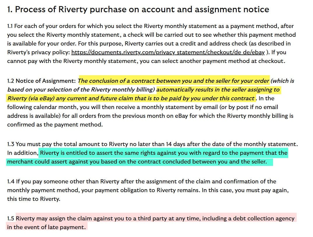 Because the claim to money owed by the buyer has been assigned to Riverty for these payments, the contract at that point is between Riverty and the buyer, with the seller being taken out of the equation.