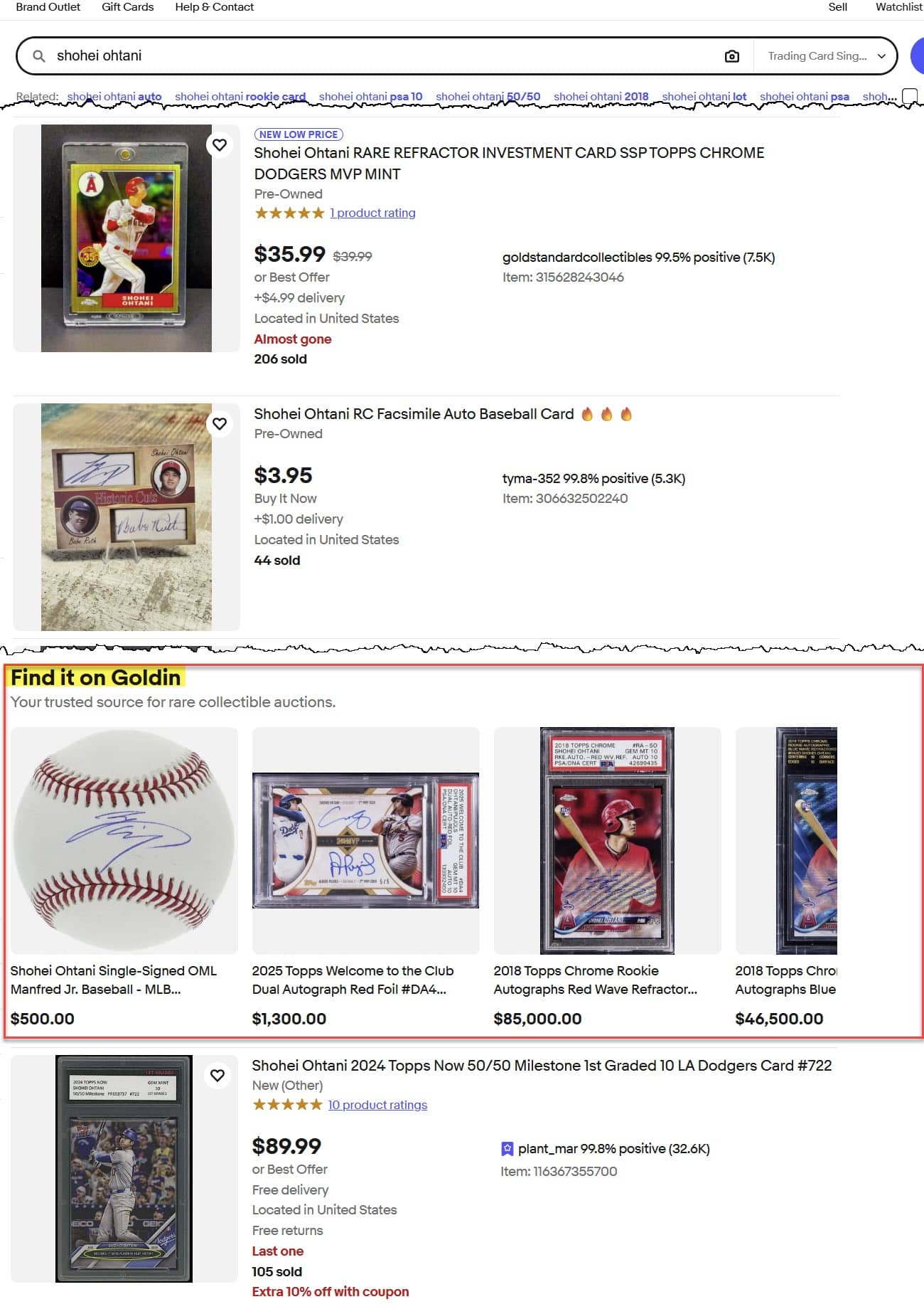 " Every Goldin listing now surfaces directly in eBay search. Type in Shohei Ohtani and you will see Shohei cards from Goldin appear right in the results. This unlocks massive buyer reach, drives stronger liquidity, and reinforces Goldin as the premier destination to consign high end collectibles."