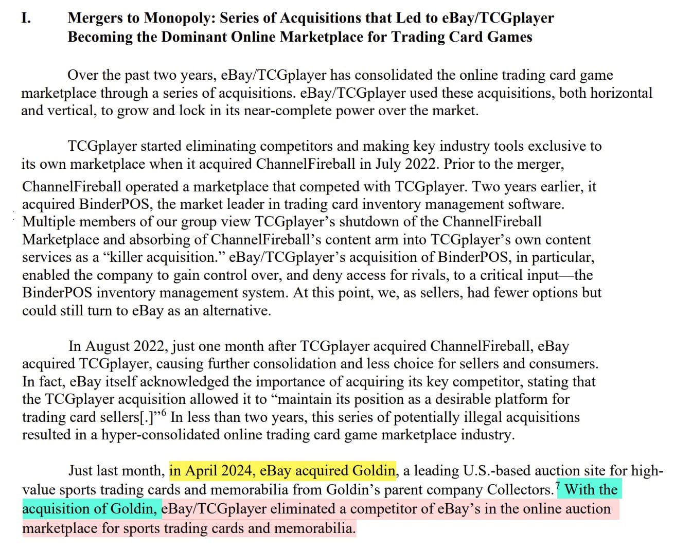 That move, along with other actions eBay undertook in the TCGPlayer acquisition and apparent due diligence failures, raised concerns about potential antitrust violations and anti-competitive behavior, resulting in the Responsible Online Commerce Coalition filing a petition urging the FTC to investigate.
