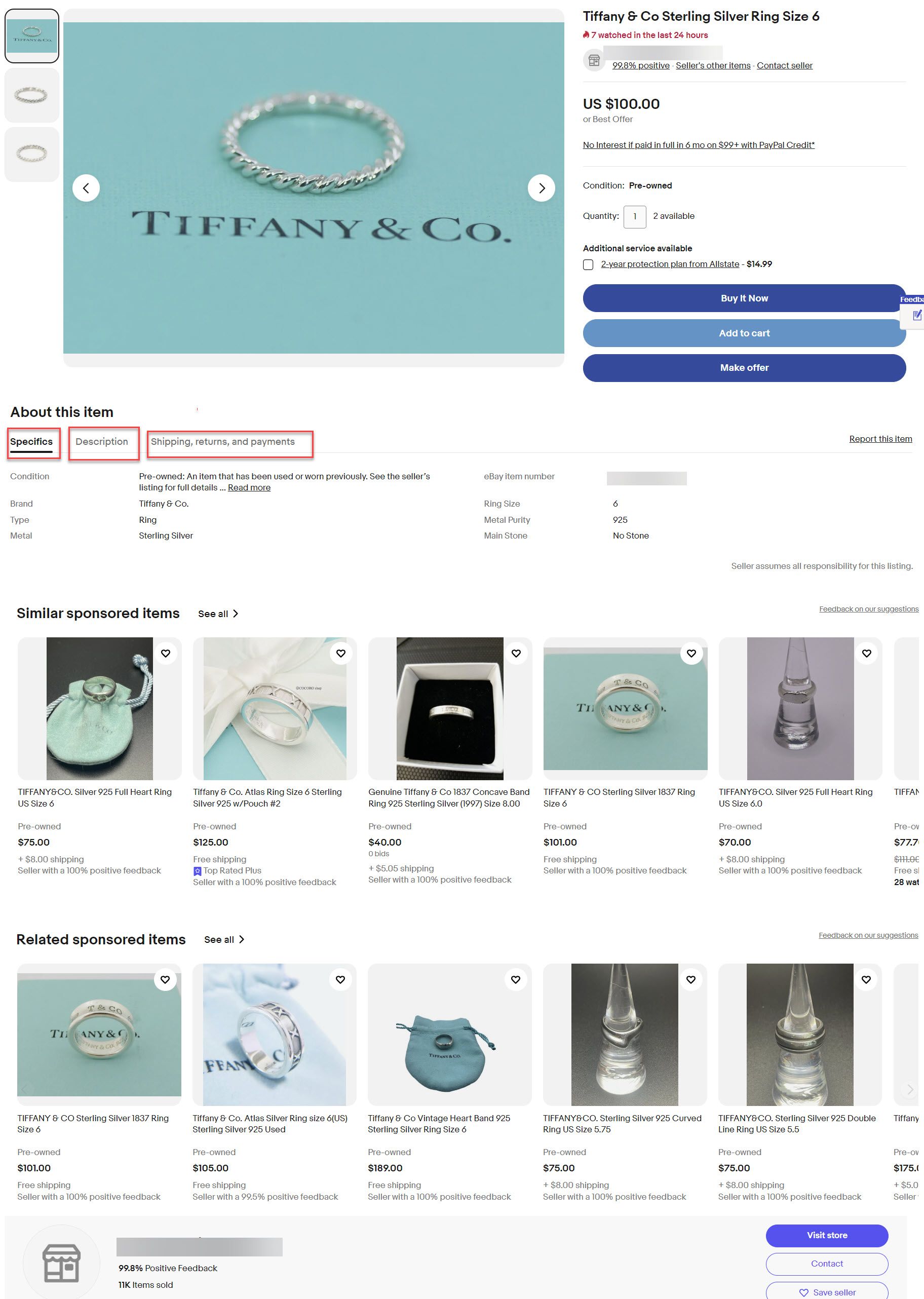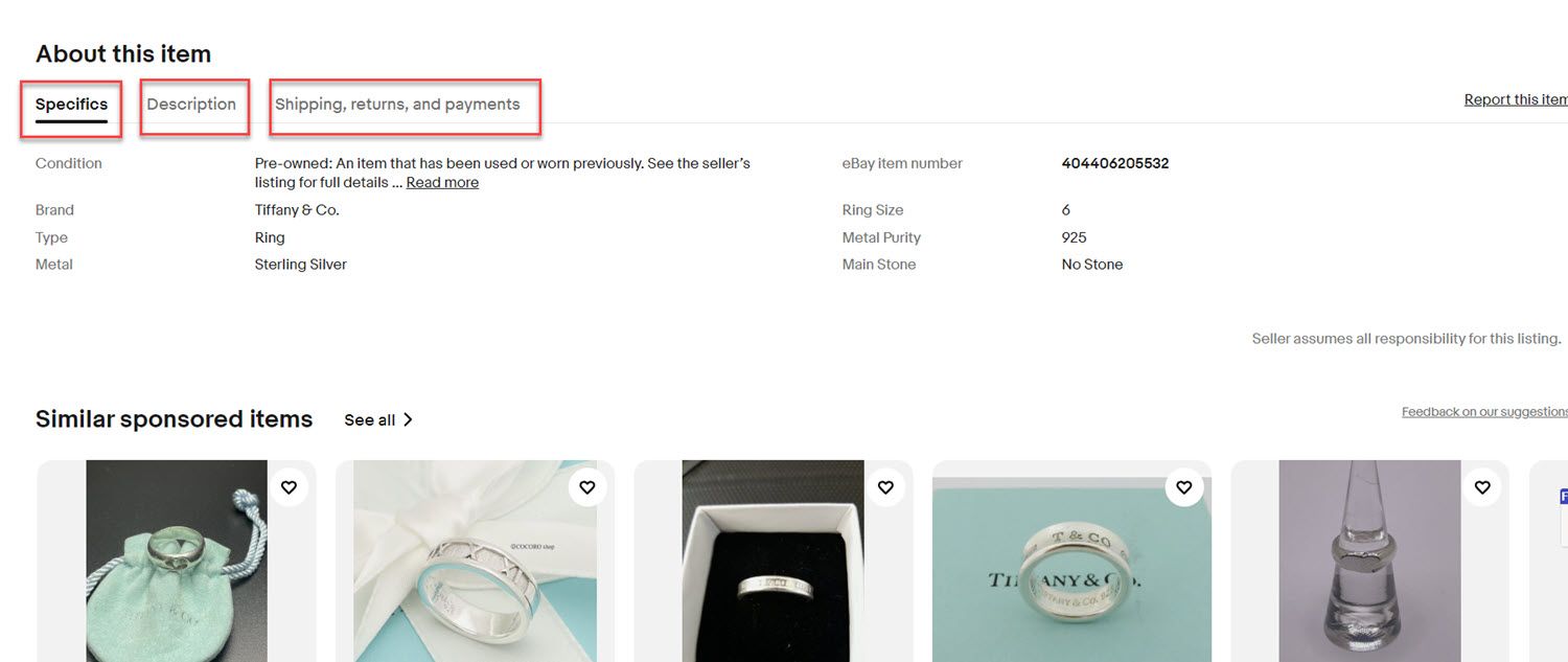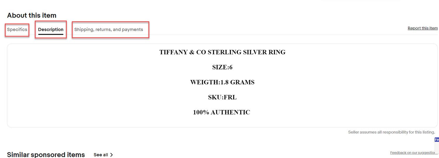 In response to seller outrage, eBay confirmed their commitment to put the item specifics and seller description above ad modules. They have technically adhered to that promise with this latest test, but at the expense of having the description immediately visible on the page without having to click to a different tab.