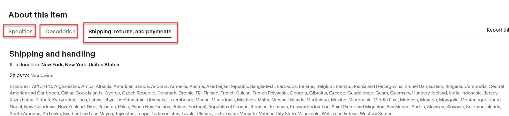 However, now instead of having one tab with Item Specifics and Seller Description listed vertically, eBay has moved the description to a separate tab and defaults to only showing the Item Specifics.