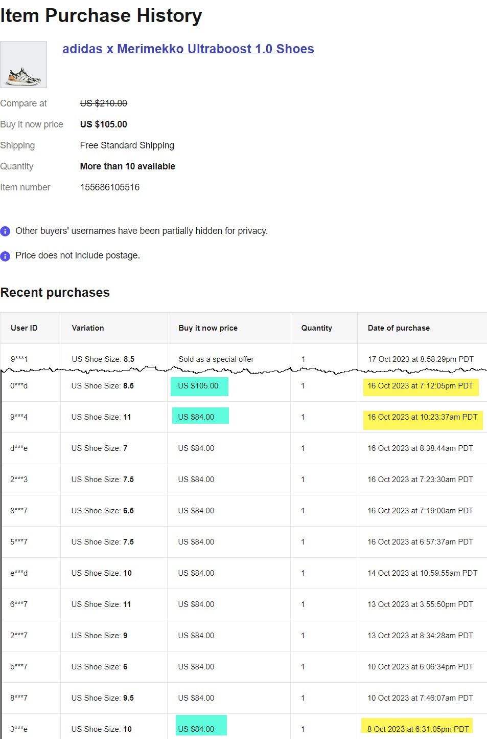 Add the 20% HEADSTART discount and the total would be $84.00 - the exact same price the sales history shows they were selling for without a coupon just hours before this sham of a "sale" started.