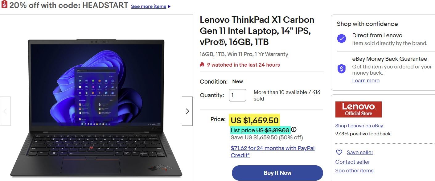 This Lenovo ThinkPad appears to be a steal at $1,659.50, 50% off the list price of $3,319.00. Take that extra 20% off and your final price would be $1,327.60.
