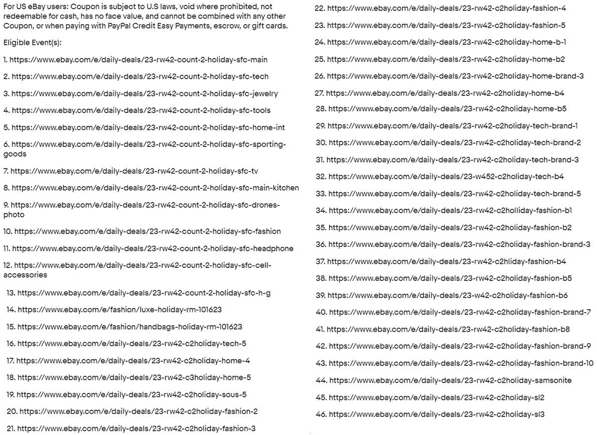 Another week, another 20% off promotion driving sales for the focus vertical strategy while aiding and abetting sketchy business practices and fake strikethrough pricing discounts - it's the eBay way!
