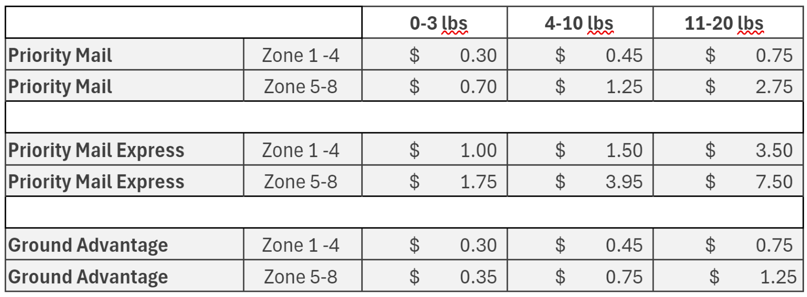Priority Mail cubic pricing will increase from $0.30 - $0.80 and Ground Advantage cubic pricing from $0.30 - $1.25.