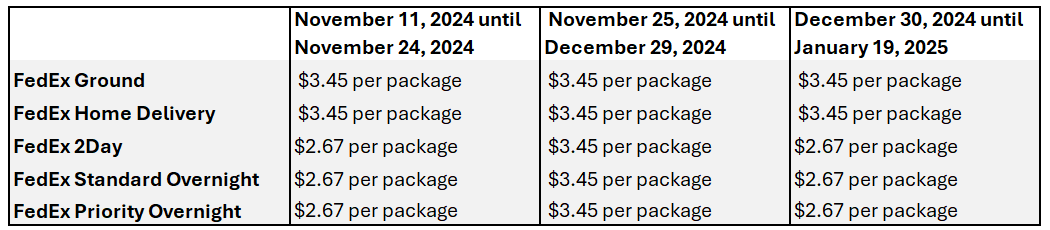 FedEx and UPS have both updated their peak season surcharge structure on eBay Labels effective November 11, 2024.