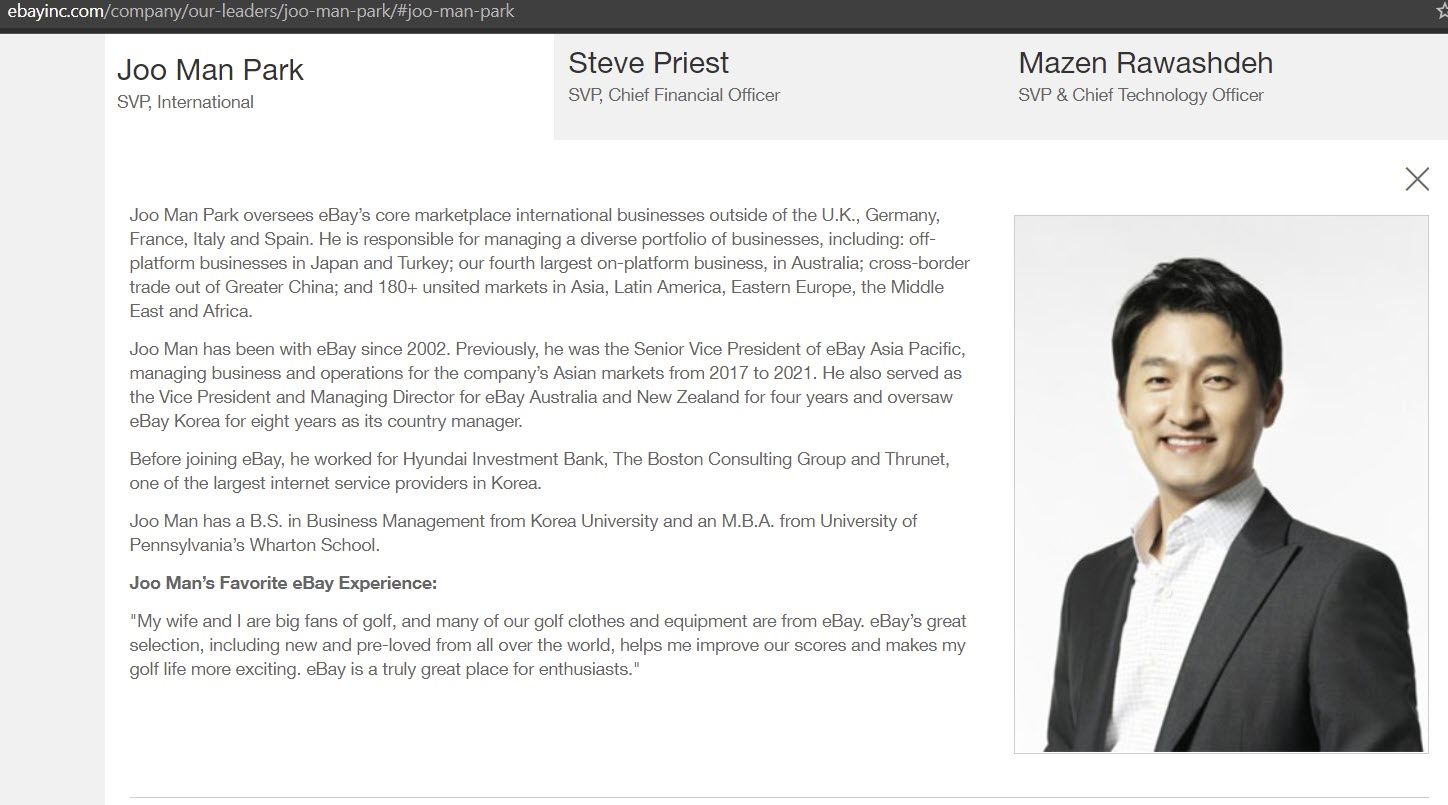 eBay has replaced Lee with internal promotion of Joo Man Park.