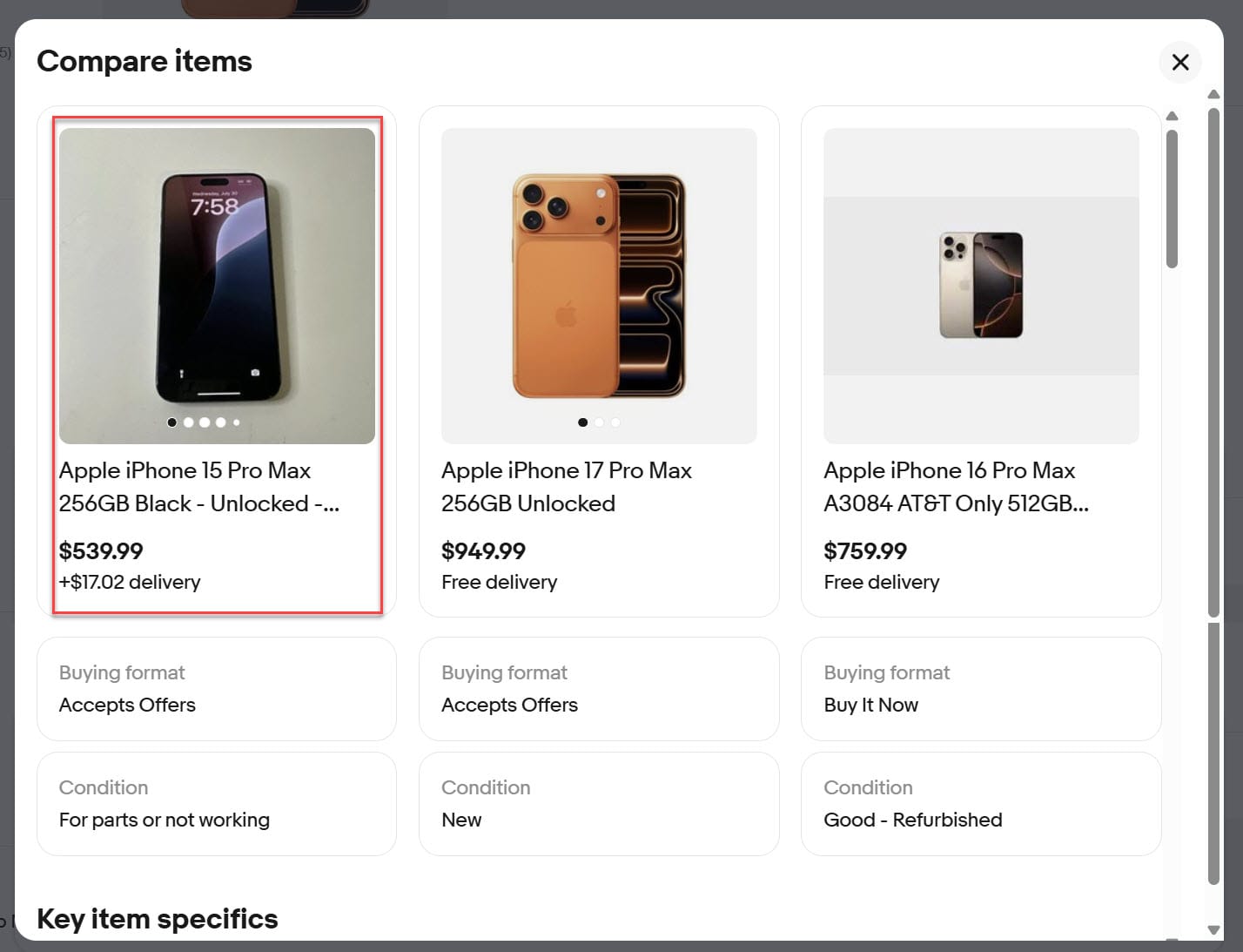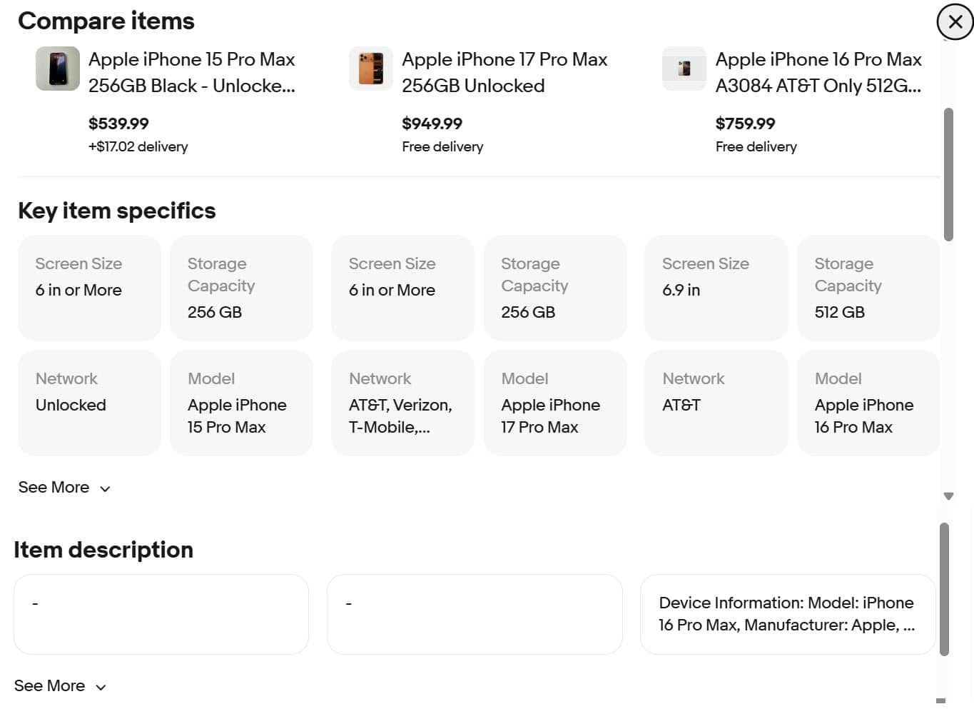 When I saw the first hints of this feature in yesterday's Marketing Terms update, I hypothesized that eBay may be looking to add product comparison into it's Agentic AI experience for buyers - a natural use case for AI that is already being deployed by competitors.