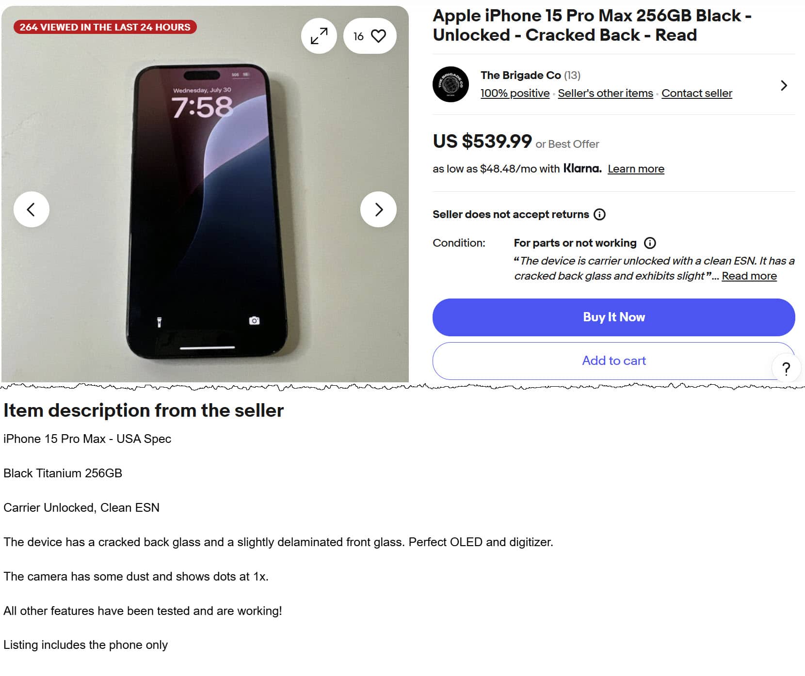 The first problem I've found is that eBay is not consistently able to pull seller provided description information from listings.