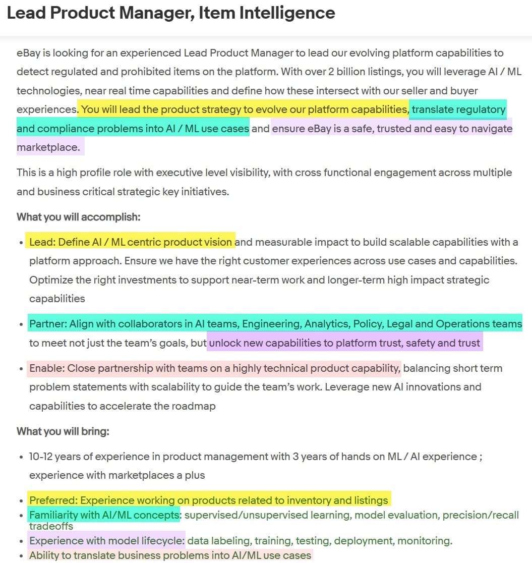 A new job ad posted on eBay's careers page shows the company is looking for a Lead Product Manager, Item Intelligence to "lead the product strategy to evolve our platform capabilities, translate regulatory and compliance problems into AI / ML use cases and ensure eBay is a safe, trusted and easy to navigate marketplace."