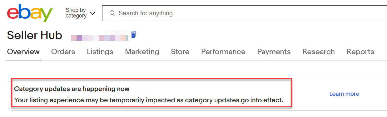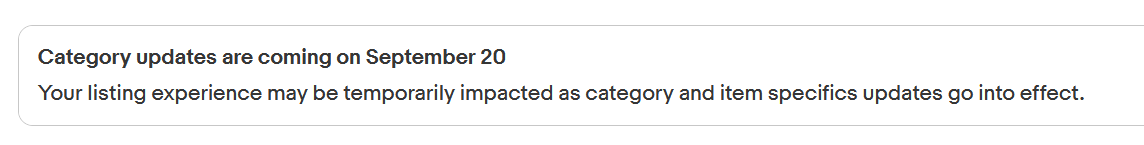 Sellers are reporting seeing the following banner in Seller Hub tonight, saying category updates are happening now and may temporarily impact the listing experience.