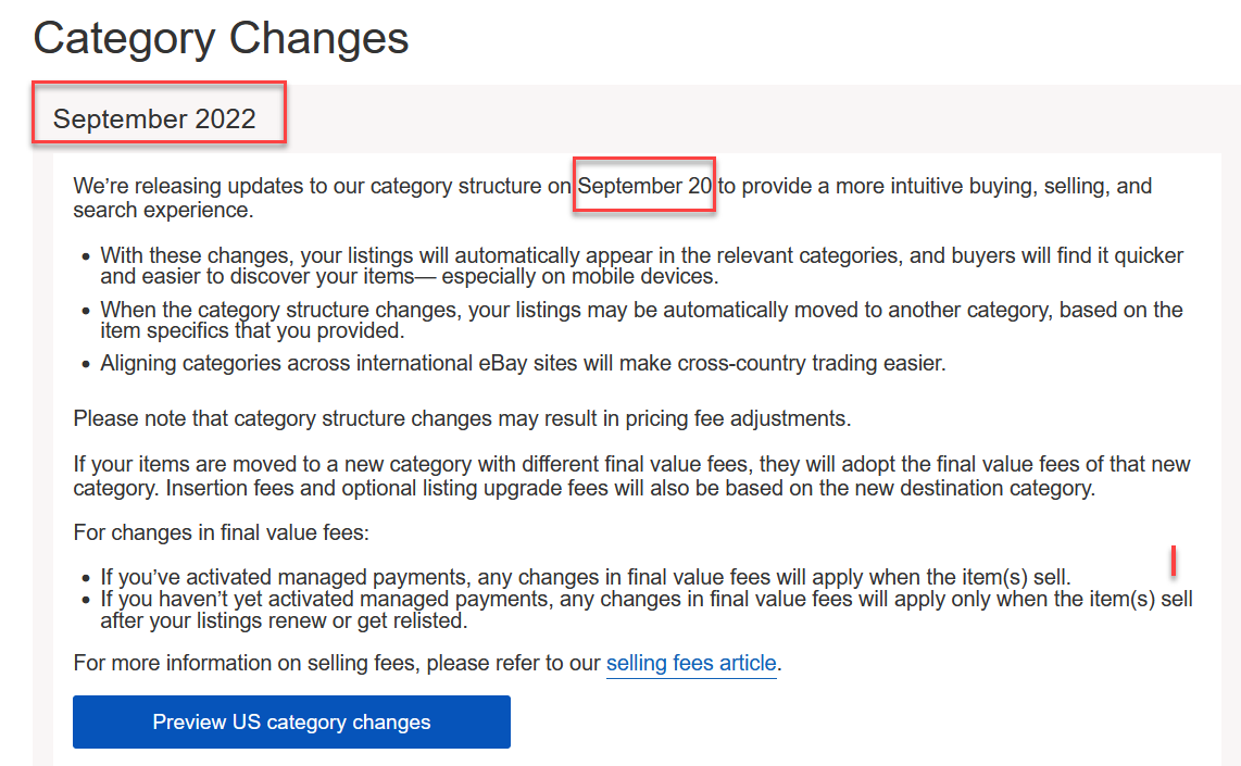 Once these changes are complete, we recommend checking your listings in the above categories to see if any were affected and whether you need to make any changes.