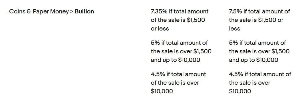 Bullion is only increasing 0.15%, from 7.35% to 7.5% on items $1,500 or less, no increase above $1,500.