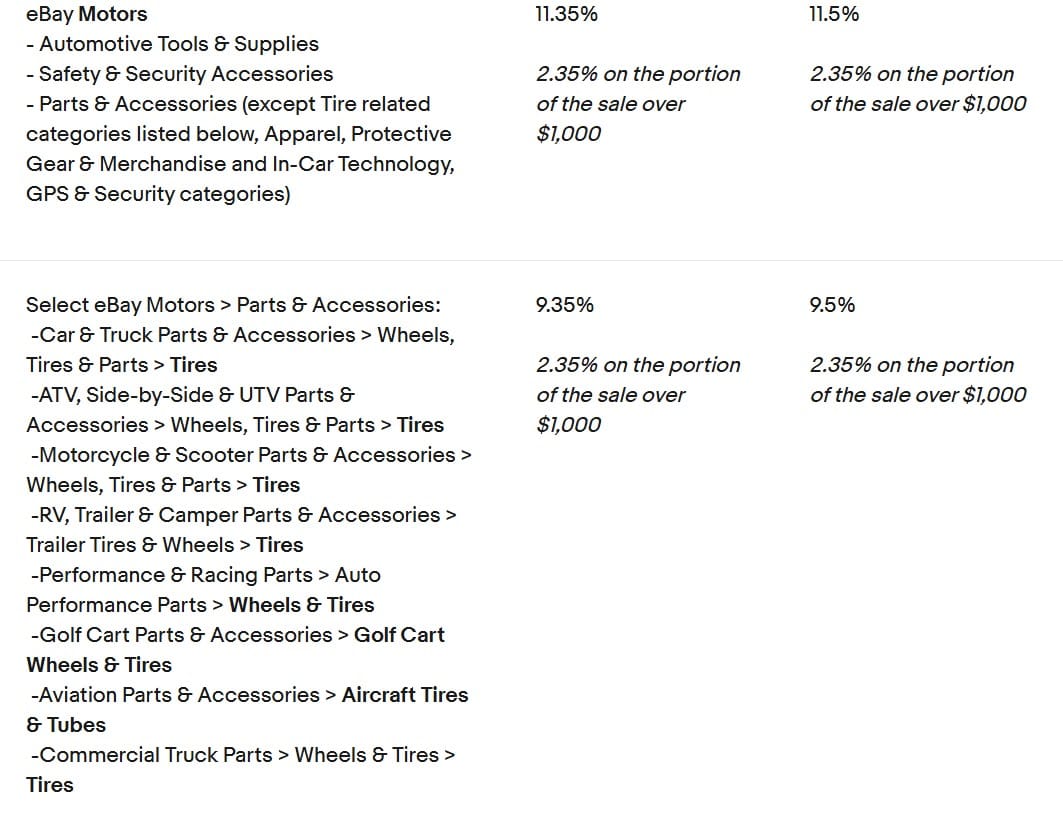 Motors Parts/Accessories and Supplies are also only increasing 0.15% from 11.35% to 11.5% in some sub-categories and from 9.35% to 9.5% in others.