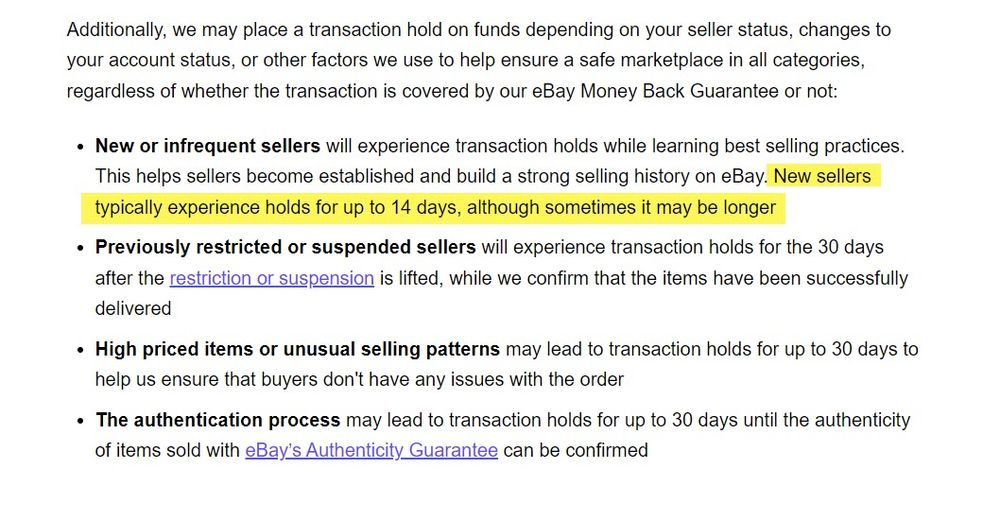 I'd also imagine eBay is probably not subjecting this account to the same holds on funds that most new sellers face either.