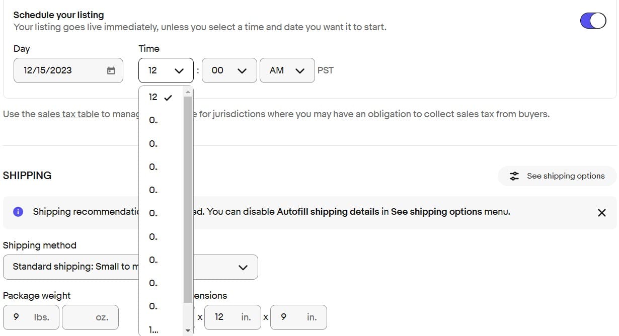 eBay Listing Form Glitch Scrambles Scheduled Times