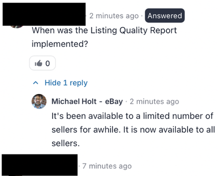 And an eBay employee in the Q&A chat for the Check In event confirmed that the Listing Quality Report should now be available for all sellers.