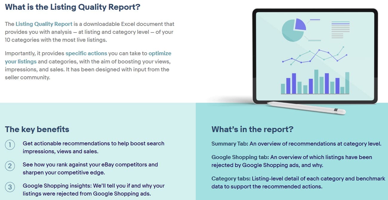 After an almost 5 year wait, eBay is finally rolling out the Listing Quality Report to all sellers, providing insights to help optimize listings and fix errors that may prevent listings from showing on Google.