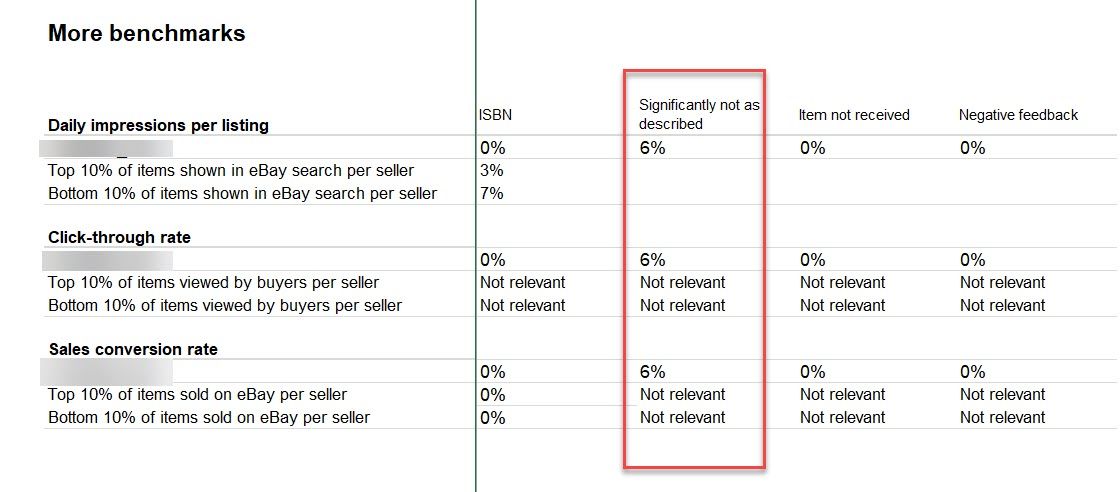 The report from October 4th is also showing 6% in a different category for Significantly Not As Described (SNAD).