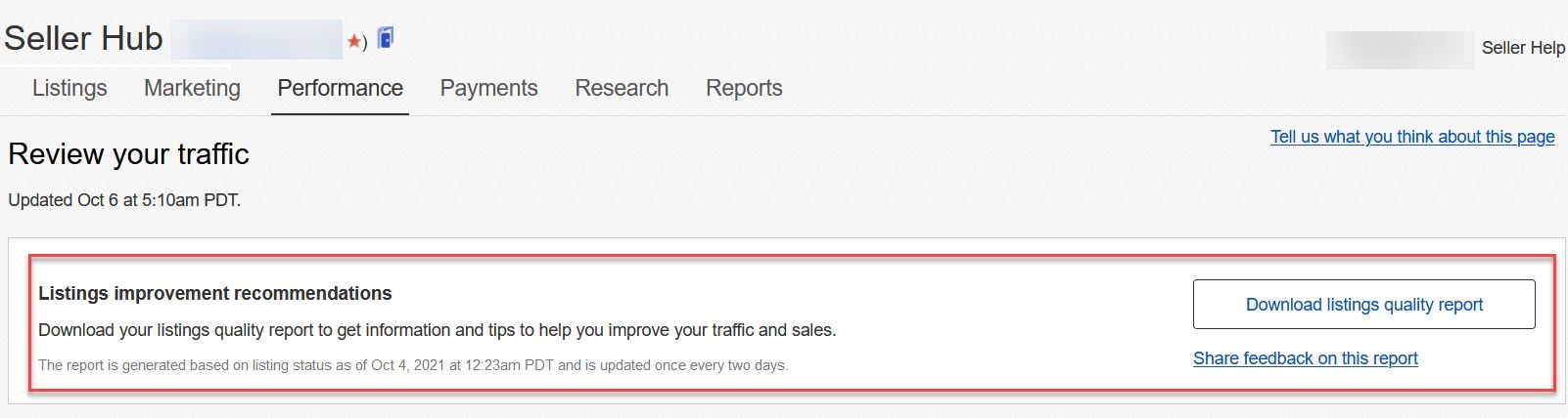 If you are not familiar with this report, it can be found in Seller Hub under Performance>Traffic