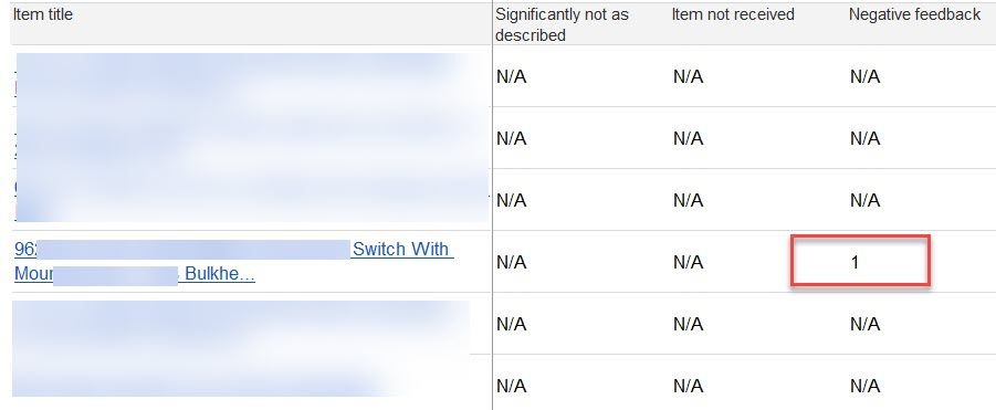 The first thing that stood out to me was one category where the LQR is saying this account had received negative feedback. This account has exactly 1 negative feedback in the last year and that was received more than 6 months ago, so it should not be anywhere on this report.