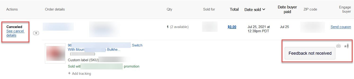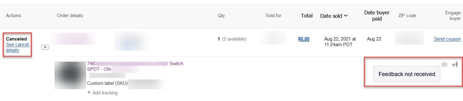 Tracking back through Seller Hub revealed the only sales for both of these items were older than 31 days and had been canceled by the buyers with no feedback left!