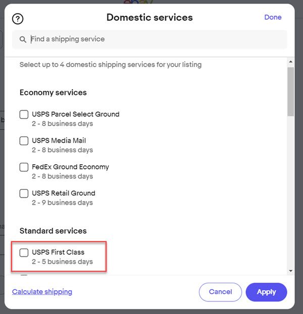 eBay Listing Tool Missing USPS First Class Shipping Option?