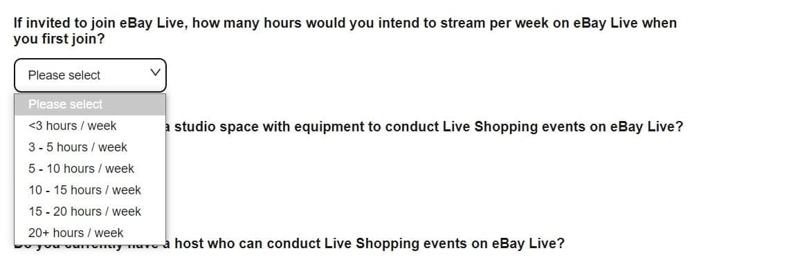 eBay is also clearly looking for sellers who will be willing to commit a decent amount of time to streaming on their site every week and appears to have a preference for livestream sellers who have an experienced host and professional studio space and equipment ready to go.