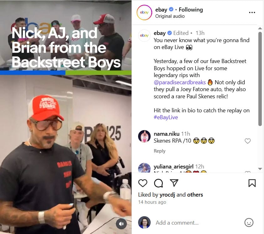 Day 2 of eBay Open kicked off with a keynote speech from Chief Commercial Officer Jordan Sweetnam promoting eBay Live as the future of selling on the platform, encouraging sellers to check it out and the company even brought in the Backstreet Boys for a celebrity Live guest appearance.
