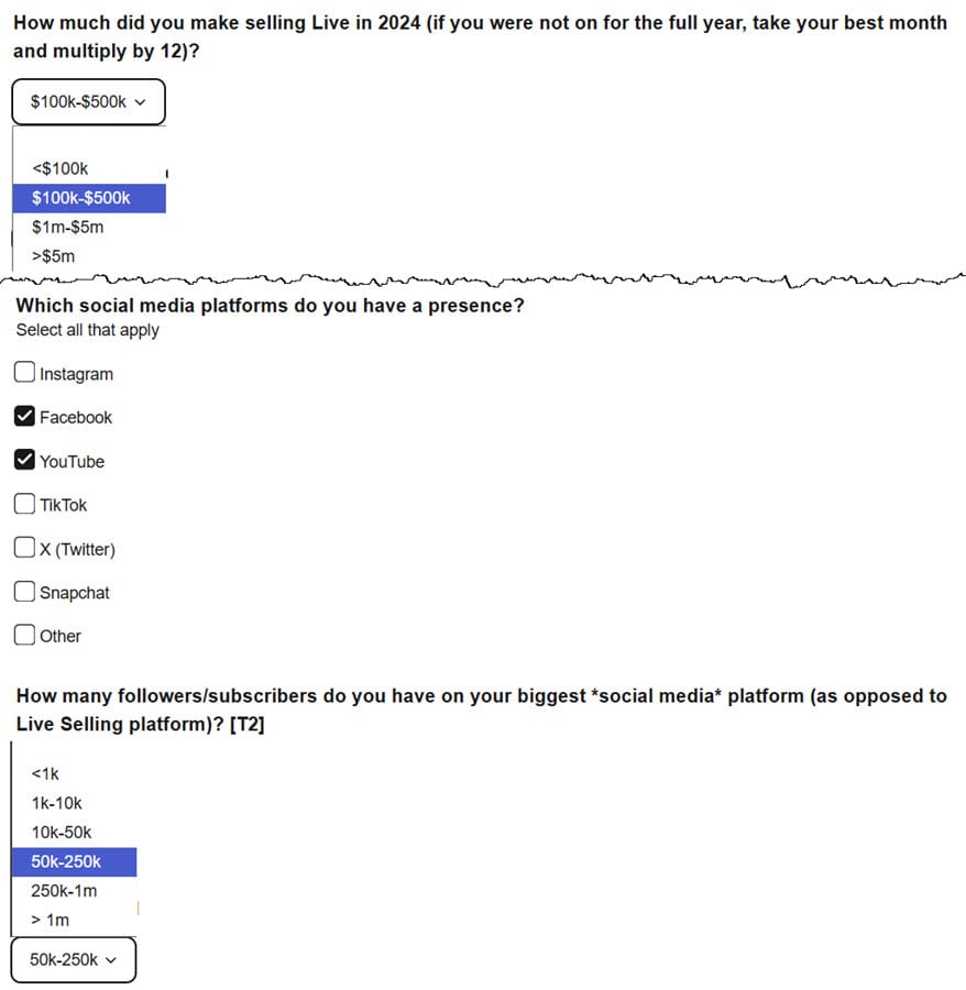 But the criteria for sellers to qualify is still very strict and leans heavily toward those who have extensive previous live selling experience and an established following on other platforms.