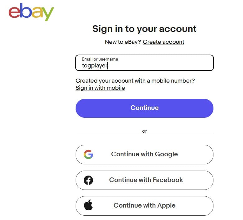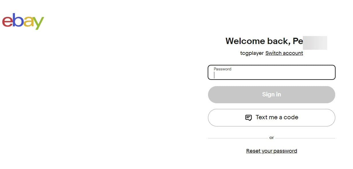 I was able to confirm the flaw myself by using an incognito browser window - it should go without saying that I am not associated in any way with either Adidas or eBay-owned TCGPlayer, do not have any knowledge of their login credentials or employees who would be named on their accounts, and had never before had reason to even attempt putting any user ID but my own into eBay's login screen.
