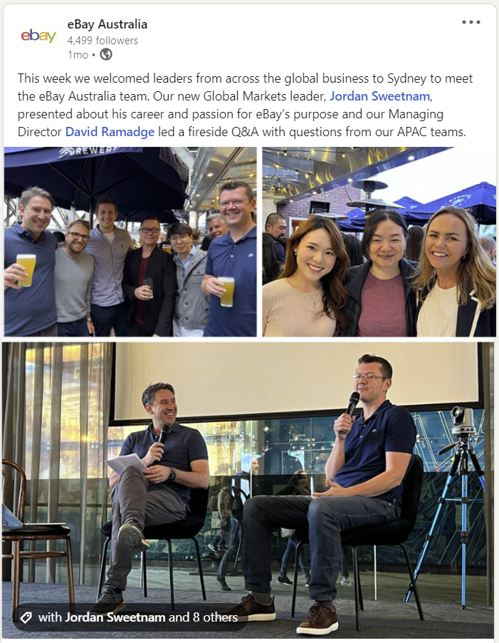 eBay Australia's LinkedIn feed confirms Jordan Sweetnam took over for Joo Man Park over a month ago - which shows it happened around the same time as Rob Hattrell stepped down as Head of Europe.
