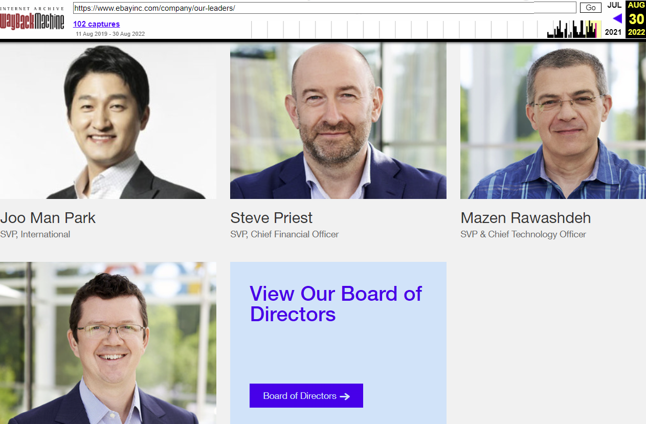 So why did it take over a month for eBay to update the Leaders page to remove Joo Man Park and update Jordan's bio when Rob Hattrell was removed at the end of July?