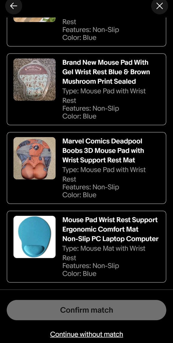 This heavy reliance on text/keyword/context matching instead of actual image matching isn't a new problem for eBay.
