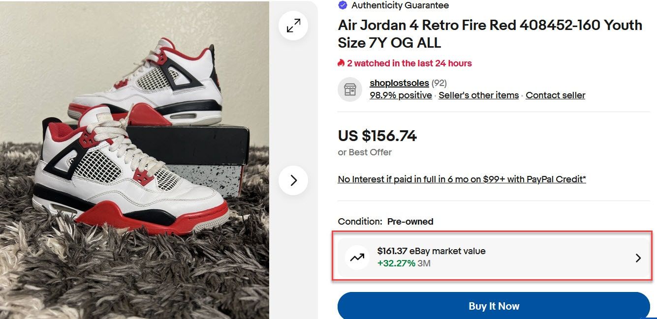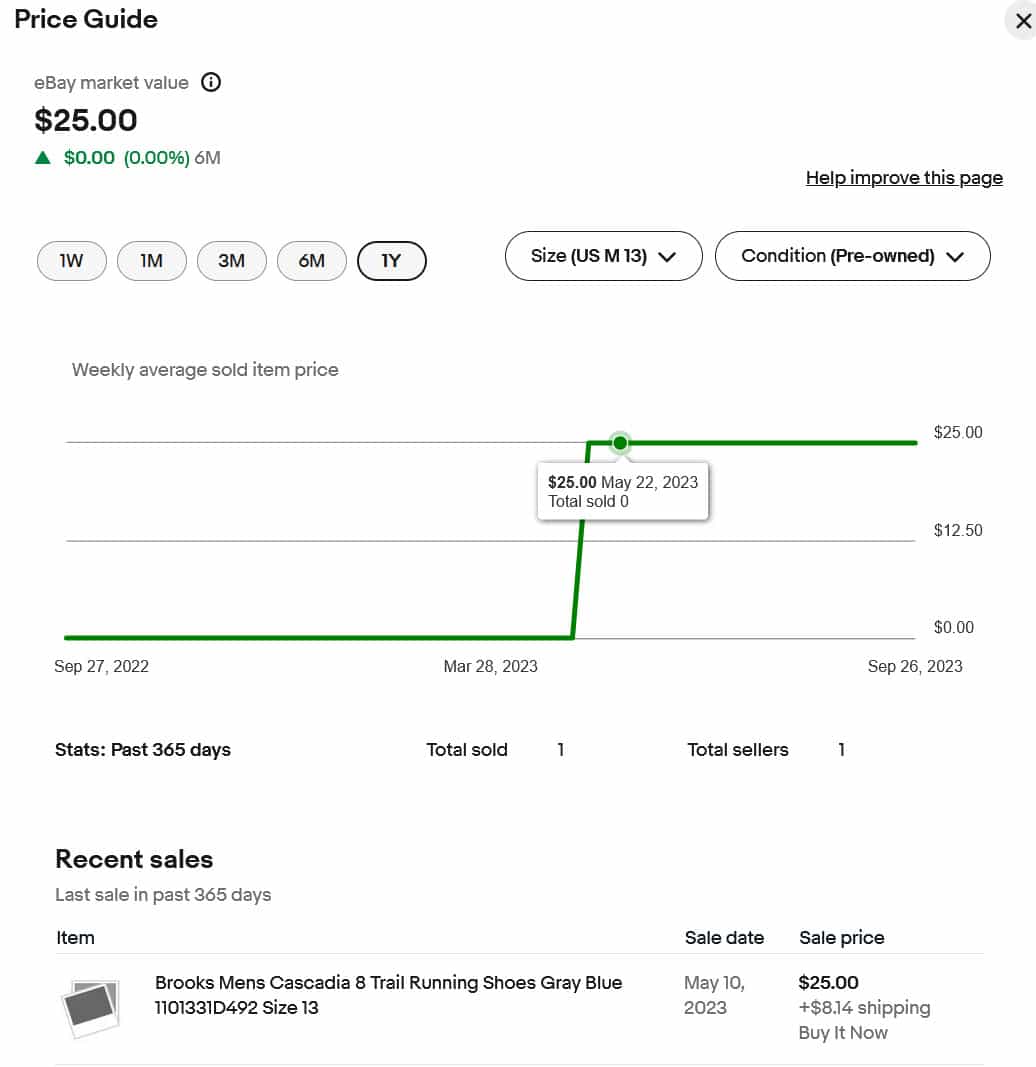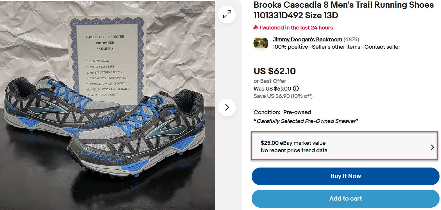 In this example, eBay says the market value is $25.00 based off a single previous sale in May, which may not make for the most fair comparison, especially when there could be a very wide variety in condition between the items being compared.