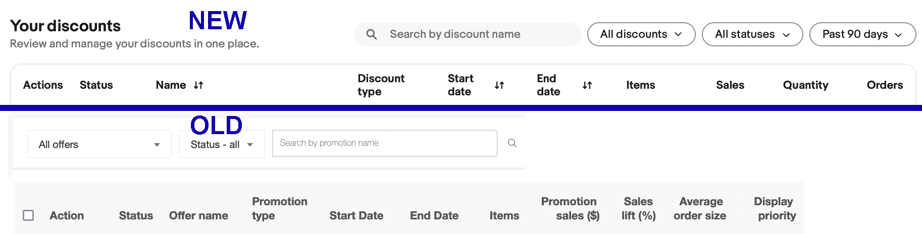 - They eliminated the data column "Sales Lift %" so there's no longer quick visibility to see something like an order discount giving you a 40% sales boost and compare it to the effectiveness of a coupon or a markdown sale on the same product category. Makes it harder to gauge effectiveness of each discount. I'd like to see eBay bring that back kyle@ebay . Unless maybe eBay eliminated it because the data was not accurate?
