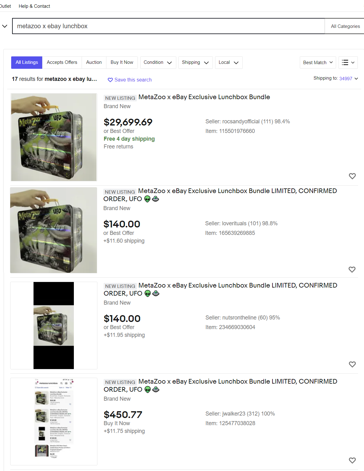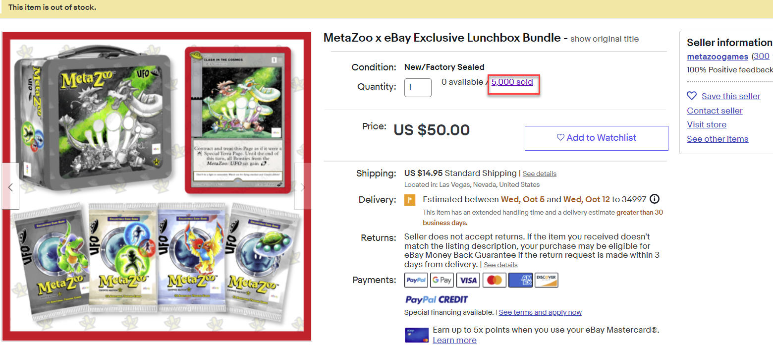 eBay Metazoo UFO Lunchbox Price Gouging