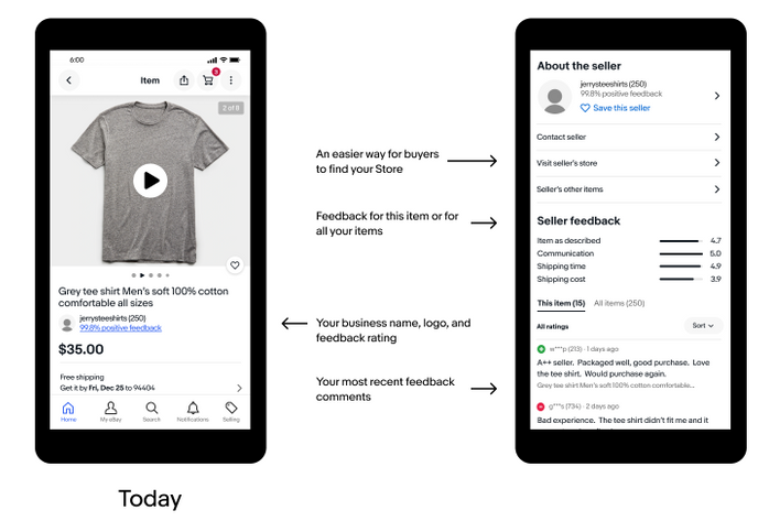 "You’ll also see your overall seller feedback and your most recent feedback comments displayed more prominently in the “About this seller” section."