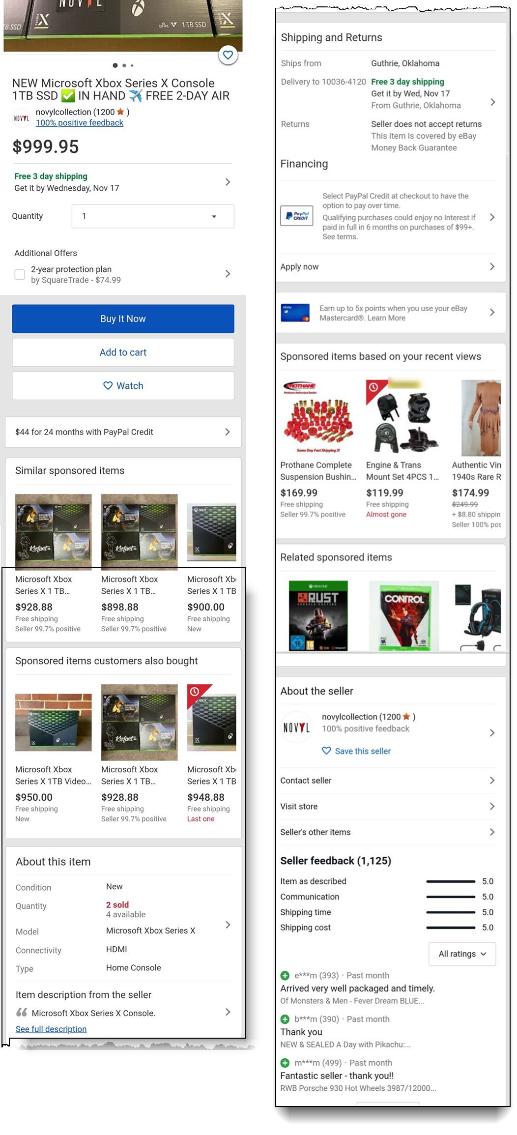I'm sure sellers will appreciate having the seller name and feedback link at the top of the listing now, but I have to wonder how much of an impact this will have considering it's on the mobile web experience only, not in the eBay app. It seems a small bone to throw sellers - I hope it's just the first step and this will become the standard experience on the app as well.