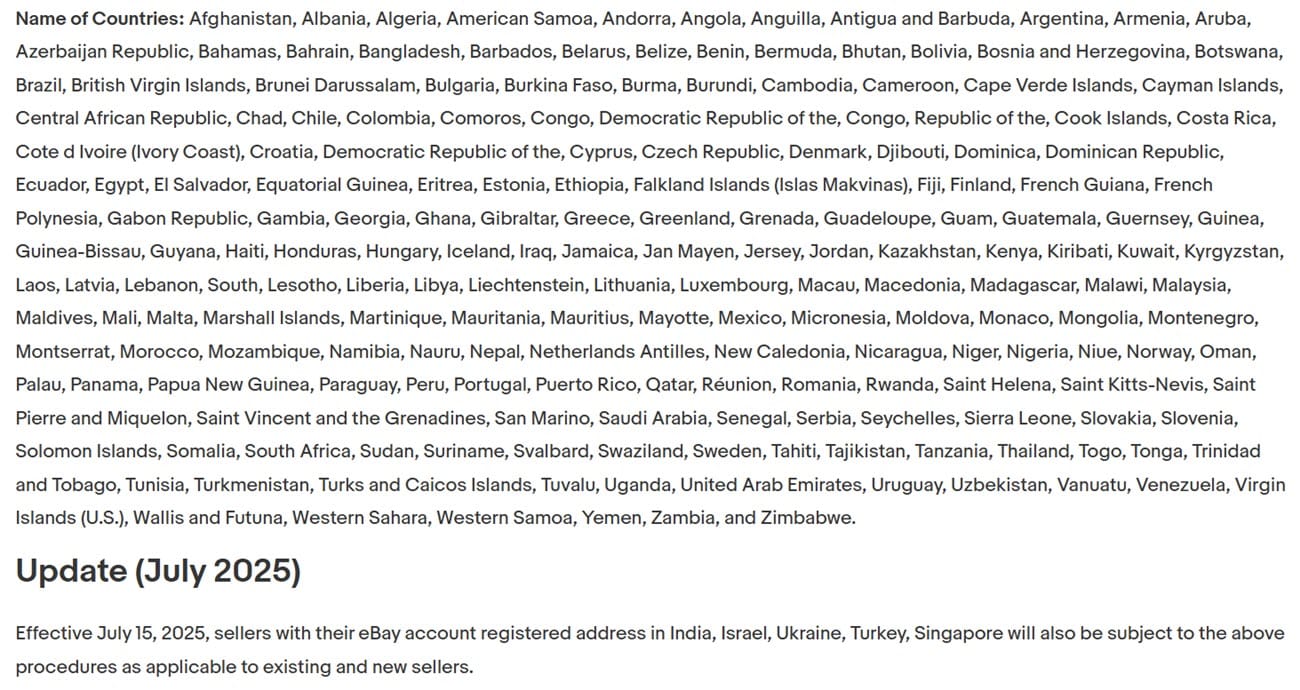eBay has also instituted item value limitations for these same countries, initially setting the maximum at $2500 but dropping that to $500, including shipping, on August 27, 2025.