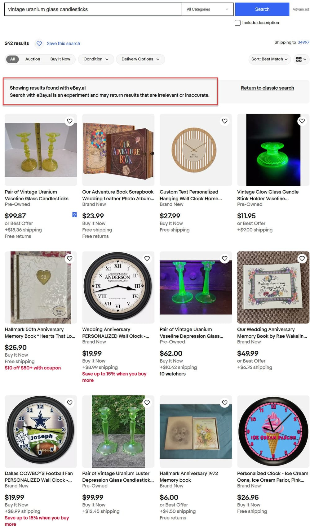 When I tested it 2 months ago, the first thing I noticed was a disclaimer that says "search with eBay.ai is an experiment and may return results that are irrelevant or inaccurate" - and boy they were not kidding!