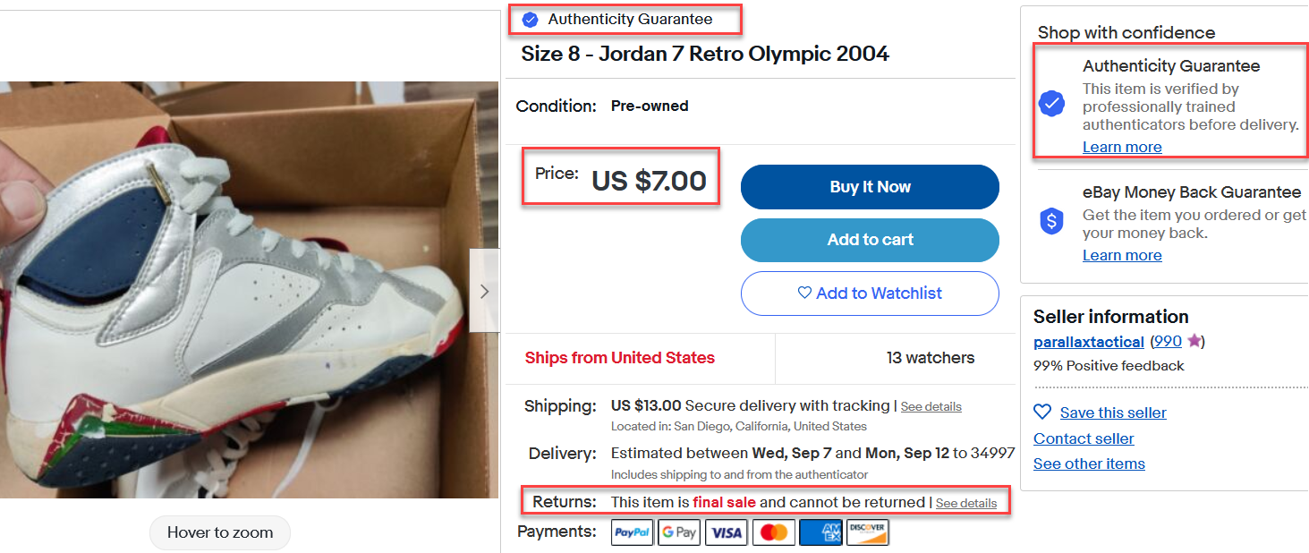 But that's not what appears to be happening now - instead it appears that eBay has in fact removed the price requirement and is adding authentication to many shoes from qualifying brands, regardless of the BIN price.