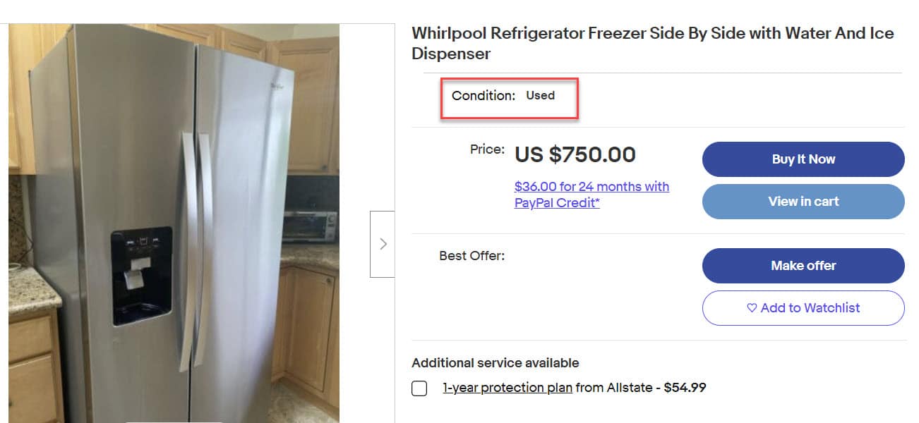 However, I ran a few tests and sure enough, eBay is applying the $3 fee to white goods in used condition and to parts in both new and used condition that are sold separately.