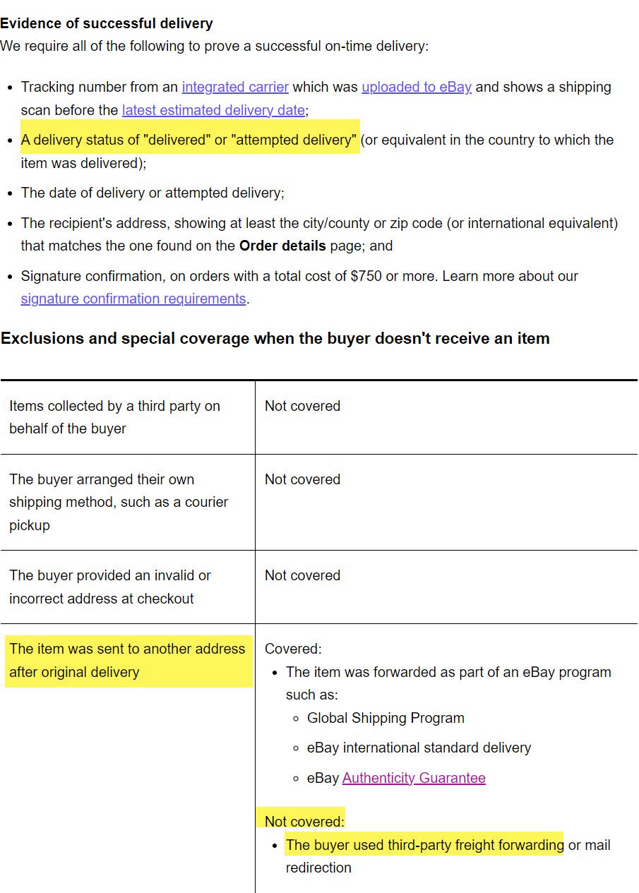 However, because eBay's system are not recognizing these packages as "delivered" at the freight forwarder, sellers are losing that protection and it appears customer support may not be aware of the issue in order to correctly handle appeals.