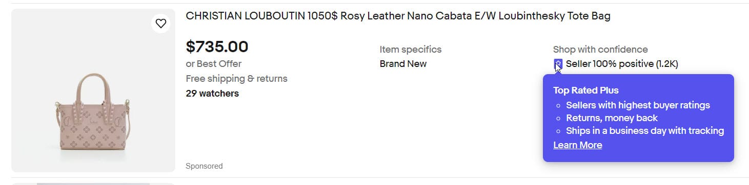 In the test, it no longer explicitly says Top Rated Plus, instead it's just the little icon next to the word "seller" and a buyer would have to hover over that icon to see a pop up explaining what it means.