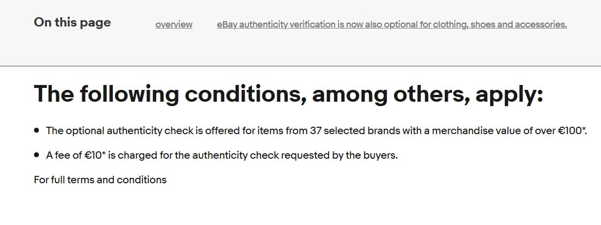 eBay authenticity verification is now also optional for clothing, shoes and accessories.