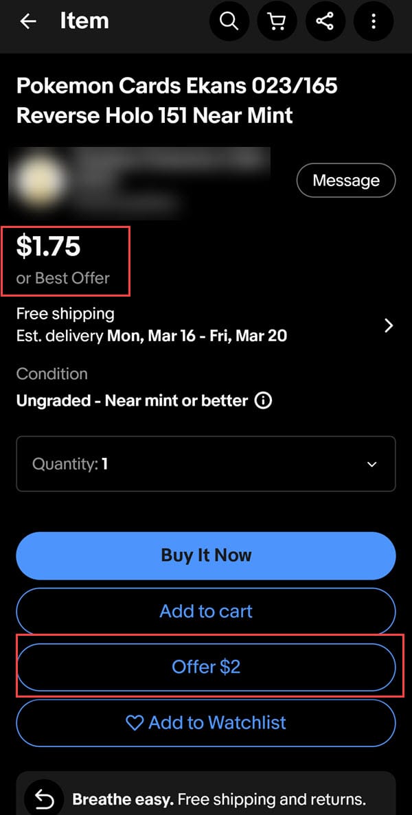Now the button says "offer $x" with the dollar amount predetermined by eBay.